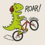 Let your little one roar in style with this adorable Dino Rider T-Shirt. Made with soft and breathable cotton, this white tee features a fun cartoon dinosaur riding a bicycle, wearing headphones, and shouting “ROAR!” — a design kids will love.